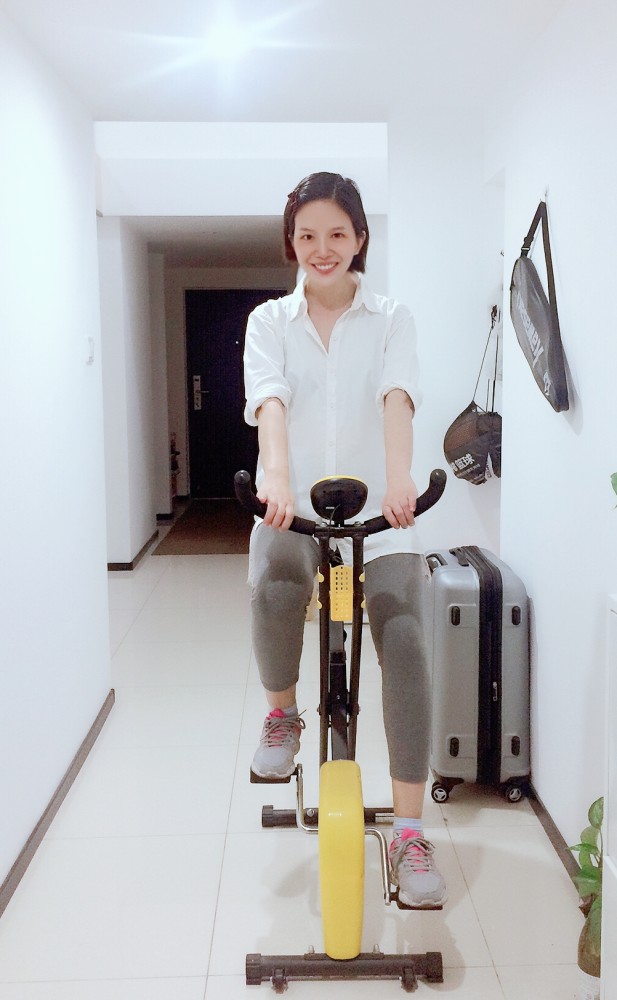 整个孕期也很幸运的顺利,孕前期一次也没有孕吐过,没有任何的突发状况。因为害怕孕后期腿脚水肿又没人照顾,所以田红买了一辆固定单车在家里骑,既安全又能活动身体。有时候特别特别想睡觉,但还是会逼着自己去完成骑行里数再去休息,因为对水肿的恐惧完全战胜了疲劳。